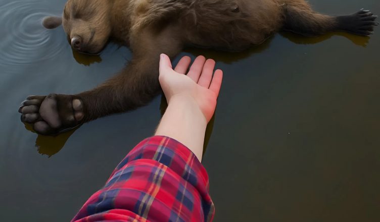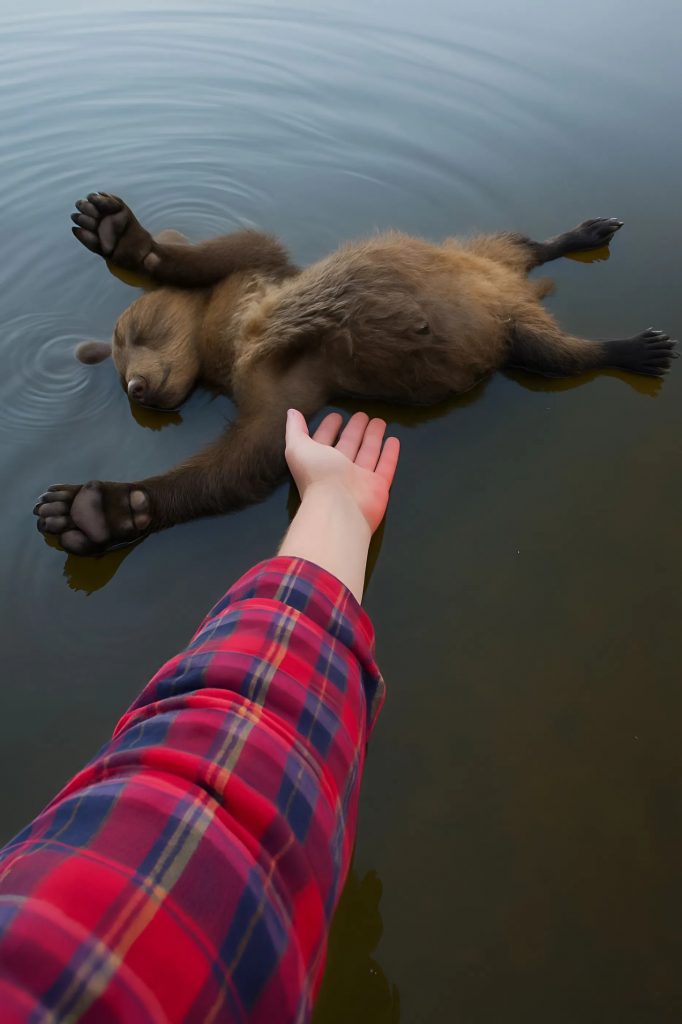 A sebesen áradó folyó mentén sétáltam, amikor a tekintetem megakadt valami furcsán — a víz felszínén egy apró medvebocs teste ringatózott.
