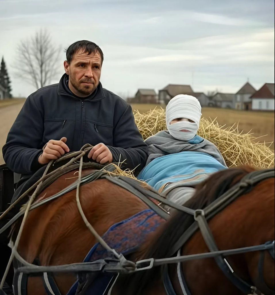 A nő fekete kendőt viselt, arca vastag kötések alá volt rejtve. Csak a szeme látszott – mély, fáradt és tele fájdalommal.