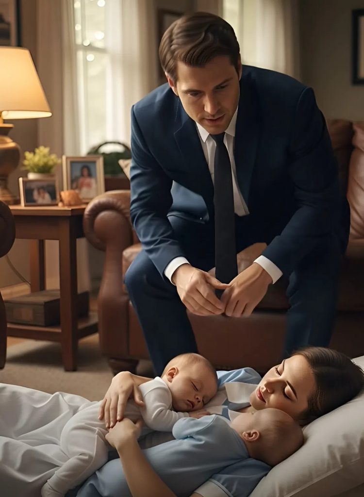 A szőnyegen, a tompa lámpafényben, a takarítónő aludt, még mindig türkizkék egyenruhájában. A kanapénak dőlve ült, teste fáradtan előrehanyatlott. Mellette két csecsemő feküdt – körülbelül hat hónapos ikrek. Az egyik apró ujjaival az anyja kezét szorította, a másik a mellkasán pihentette a fejét, megnyugodva a szívverésétől.