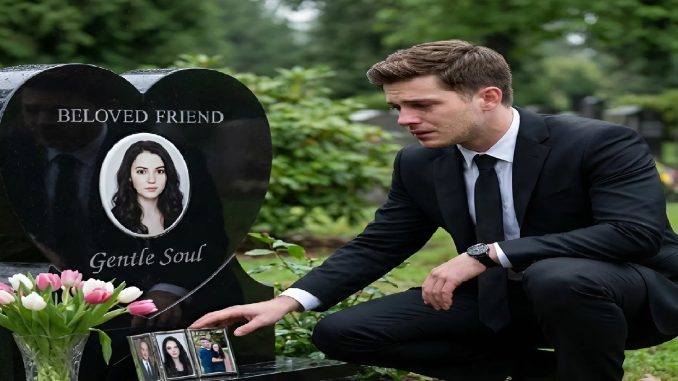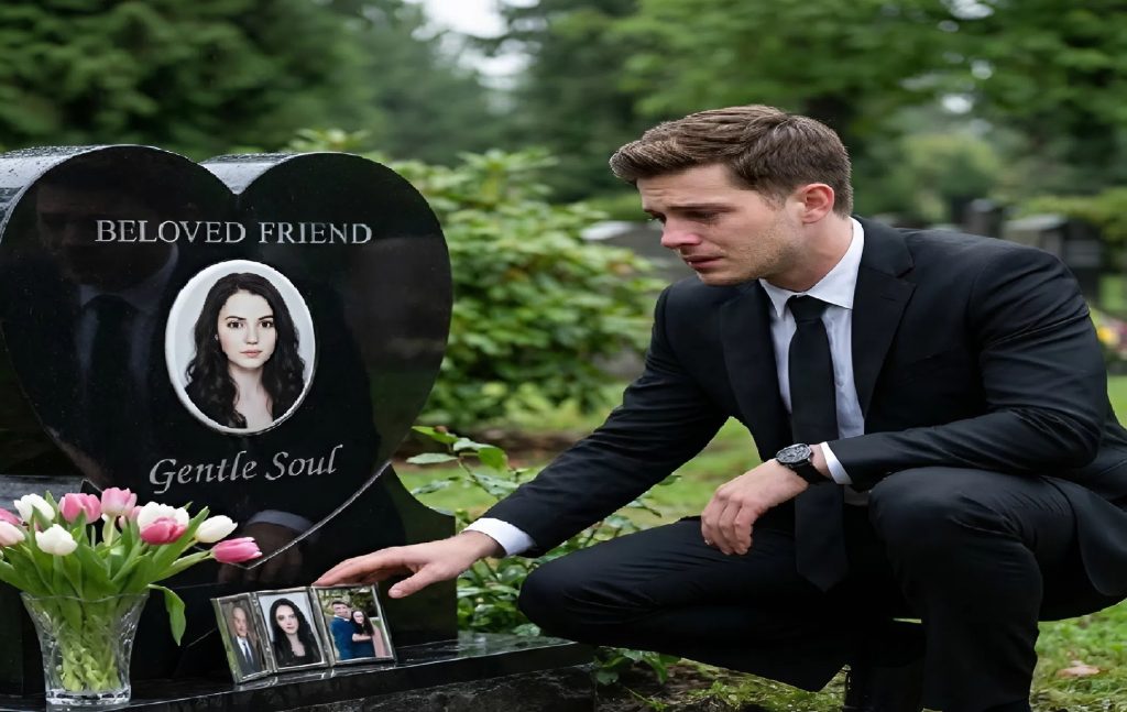 Egy félreeső részre vezette. Egy fekete, szív alakú sírkő előtt megállt.